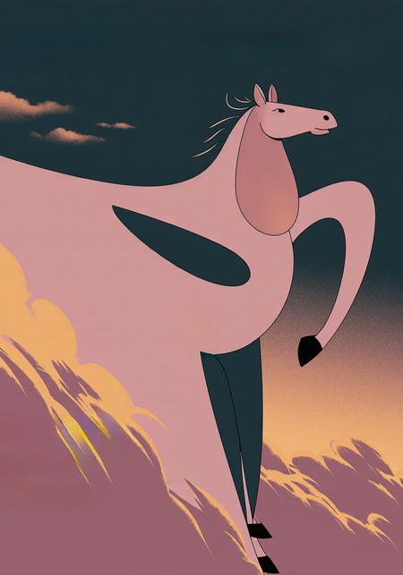 «make it in the same style, create a horse in the pretty same style as well. use the mockup»