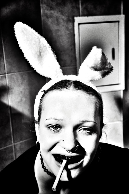 Для создания идеи этого проекта, я вдохновлялась фильмом «Гуммо» реж. Хармони Корин. Сюжет разворачивается вокруг жителей маленького городка в Америке, где жизнь каждого сложно назвать благополучной, а каждый человек живет в своей скуке, самоуничтожении и разложении. Основной художественный референс взят с главного героя, который постоянно ходит в заячьих ушках, а на обложке фильма он сидит на санузле, играя на баяне. В своем проекте я хотела художественно отразить флер маргинальности, тоски, самоедства, злобы и неблагополучности.