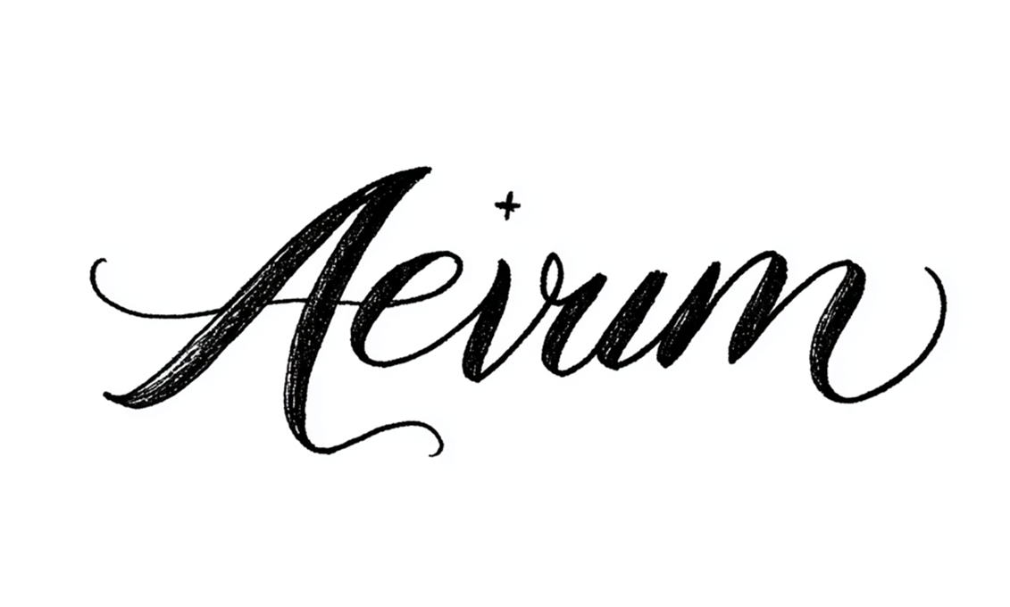/imagine prompt: create a logo, a simple line drawing of the word «Aevum» with an embroidered-style font, written in cursive letters, with a small star above it. the text is in black ink and appears to have been hand-drawn or painted onto plain white paper. it has organic, flowing lines and curves with subtle swirls around each letter. the background color is white.