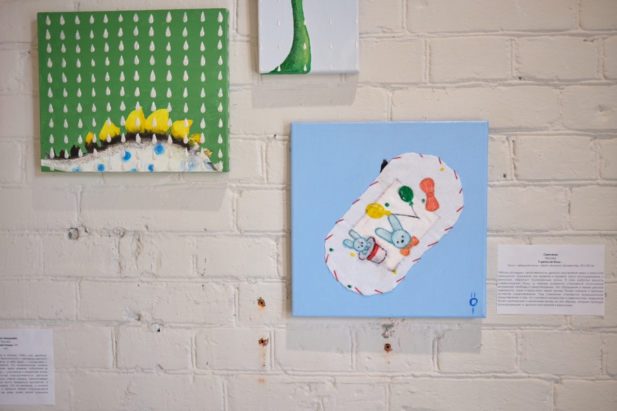 Художественный метод Кати Борщ как «акт наблюдения за движением души сквозь чувства и тишину, фиксирование ее силы и уязвимости, стремление к принятию своей глубины», — наиболее точно описывает работы не только самой Кати, но и общее настроение ярмарки. Все вокруг погружено внутрь себя. Хрупкое, ранимое, травмированное. Иногда постиронично-ребяческое. Ностальгическое. Как аппликация из цветной бумаги Жени Коро, стремящаяся вернутся к наивному, простому «доинтернетному» миру детства.