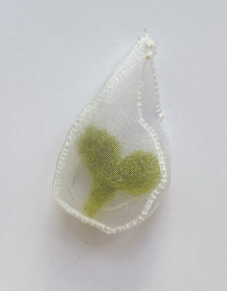 Маша Васильева. тюльпан (проснулся). 2025. Бумага. 21×17 см. 25,000 р. радиорыб. Слепой дождь. Росток. 2024. Органза, шерсть. 6.2×3.4×2.1. 6,500 р.