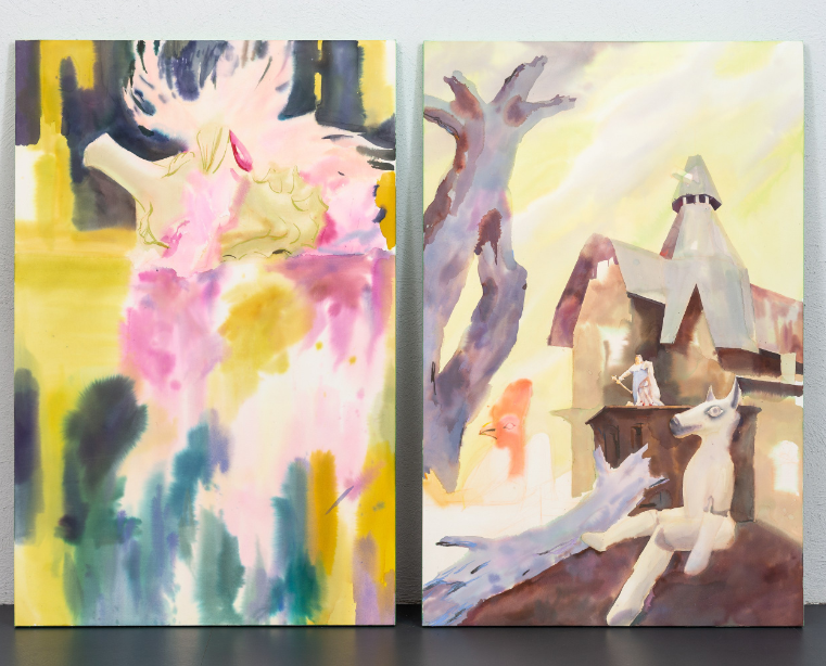 Алина Куйгуш. Дева к югу от небесного экватора. Бумага, акварель. 136 см ×100 см. 2023 Алина Куйгуш. От 0°50′ до 6° ниже горизонта (Сумерки). Холст, масло. 100 см × 150 см. 2023