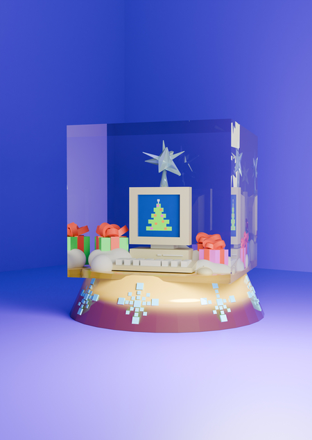 Новогодний куб выполнен из стеклянной оболочки и пластиковой подставки