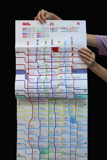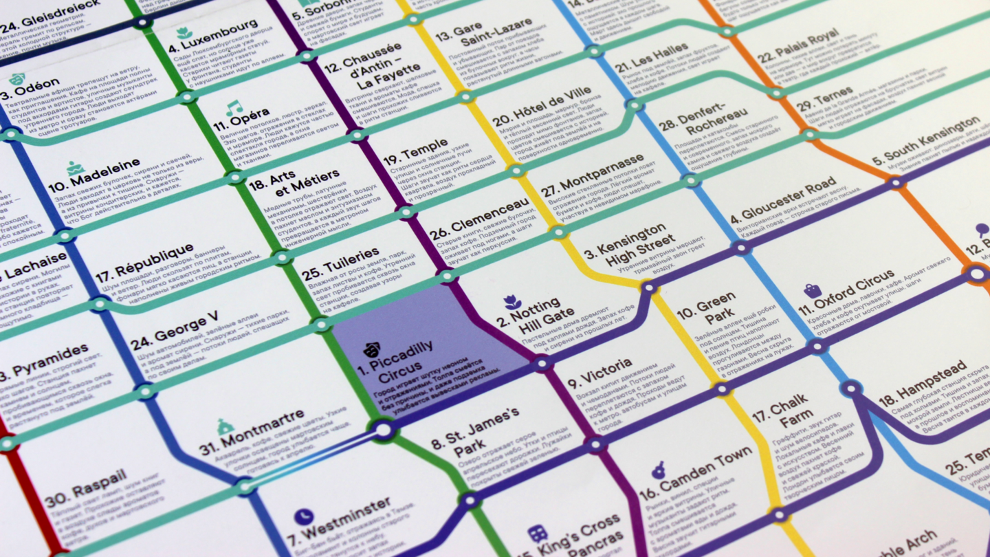Каждый месяц посвящён метро одного города мира, а каждый день месяца соответствует отдельной станции. Календарь показывает «ветки» метро через дни и месяцы, превращая календарь в визуальное путешествие по метрополитенам мира.