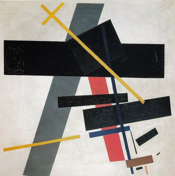 В «Чёрном квадрате» и ранних супрематических композициях Казимир Малевич подчиняет пространство строгим геометрическим отношениям. Эти формы не описывают предметный мир — они его устраняют, разрывая связь искусства с традицией подражания. Вместо изображения возникает новый тип визуального опыта, в котором материальность заменена «чистой чувственностью».