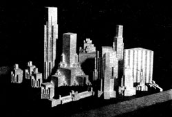 Серия «Архитектоны», следующая серия работ Малевича после супрематизма. Это переход из двумерного утопического пространства картины в трёхмерную модель будущего. В этих объёмных структурах художник стремится воплотить принципы супрематического космоса в материальной, но не функциональной форме. Архитектоны это белоснежные архитектурно-скульптурные объекты, напоминающие одновременно и здания грядущей эпохи, и макеты новой вселенной.