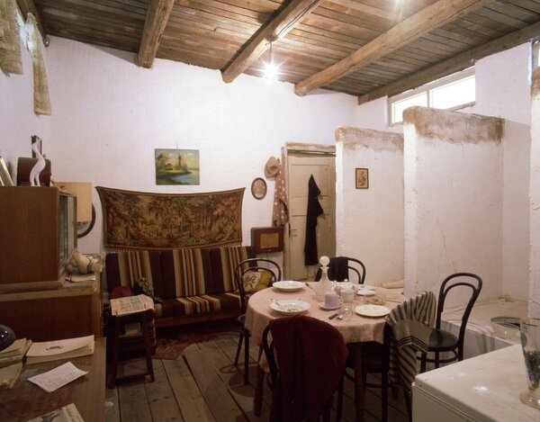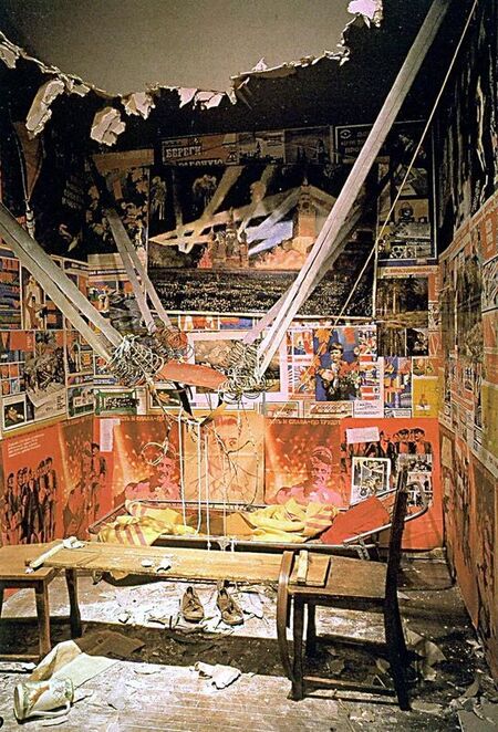Коммунальная квартира у Кабакова становится объектом противоположным архитектону Малевича. Коммуналка пространство, в котором человек растворён в быте, в хаосе вещей и в собственных попытках выживания.