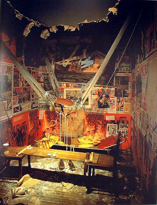 Кабаков создает «тотальные инсталляции», погружающие зрителя в среду советской коммунальной квартиры, где абсурд социального устройства формируют новый визуальный язык. Утопия Кабакова это не идеальный мир духа, а зеркальная реконструкция желаемого и недостижимого в бытовой и психологической сферах. Она одновременно комична и трагична, личная и коллективная.