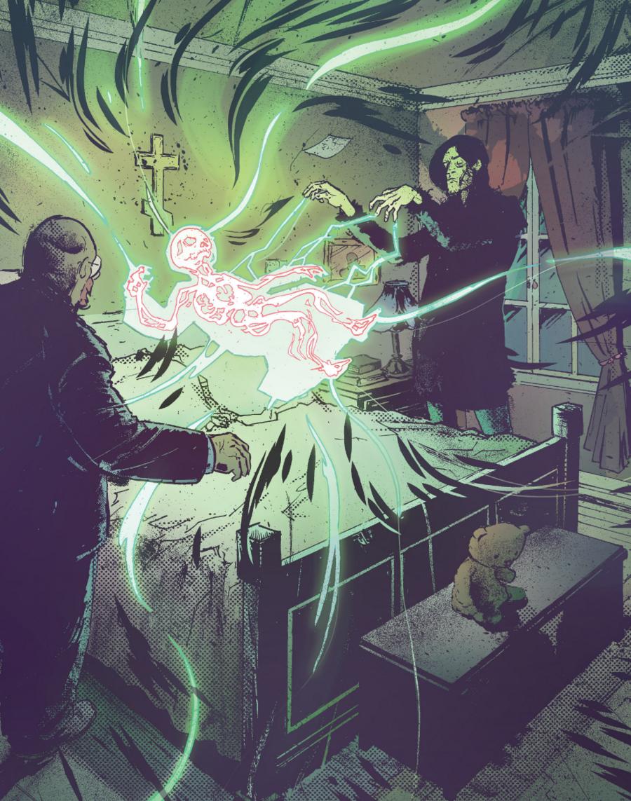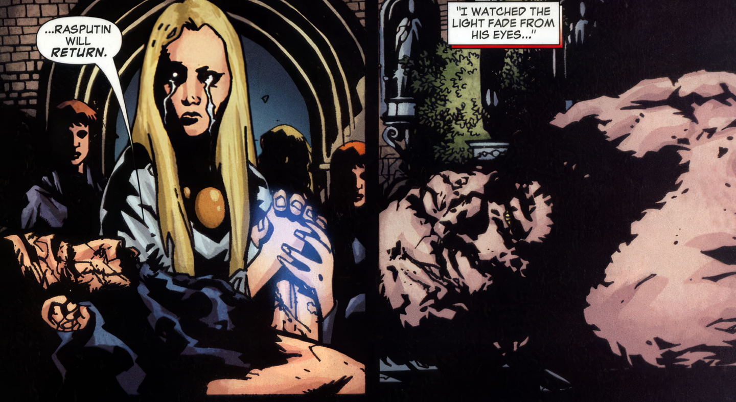 Комикс встроен в эту логику очень точно. Распутин перестает быть фигурой, выступающей против героев, как в «Hellboy», и растворяется внутри семейной истории Колосса. Он объявляется не столько историческим персонажем, сколько частью родословной: его кровь, его «фактор» распределен между потомками, которые живут уже в другом времени и в другой стране. Его план не в том, чтобы захватить власть здесь и сейчас, а в том, чтобы расселить себя по будущему, встроиться в чужие судьбы так, чтобы через несколько поколений никто уже не мог отделить себя от этой примеси.