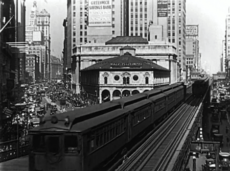 Изображение большого города — зачастую Нью-Йорка — стало одной из наиболее определяющих визуальных основ голливудского воплощения Американской Мечты. Небоскребы, тянущиеся ввысь, задают вертикаль амбиций: они обещают пространство возможностей и одновременно указывают на то, как высоко расположены желаемые социальные позиции. «В Америке, достаток и позиция в обществе были по-другому организованы — открыты для любого талантливого и трудолюбивого человека». [5] Оживленные перекрестки и непрерывный транспортный поток воплощают ритм индустриальной жизни, где каждый человек втянут в бесконечный процесс труда и движения.