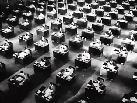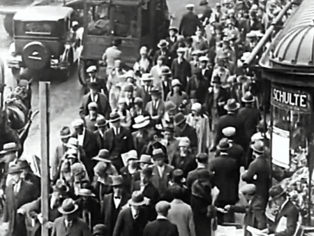 В кинематографе 1910–1920-х годов изображение толпы выступает главным способом репрезентации положения рабочего класса. Оно отражает парадоксальность Американской Мечты: идеал успеха, который доступен каждому и основан на индивидуальном самовыражении, существует в обществе, где люди живут и работают внутри системы, которая так или иначе делает их взаимозаменяемыми. Каждый стремится быть замеченным, но почти никто не выделяется. Если небоскрёбы, как было показано ранее, символизировали индивидуальное стремление вверх, то толпы подчеркивают масштаб и интенсивность той конкуренции, с которой сталкивается каждый стремящийся к восхождению по социальной лестнице человек.