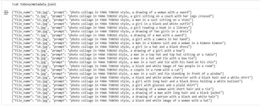 Готовый результат я загрузил на Hugging Face и начал генерацию изображений с использованием префикса «photo collage in YANA TOBOSO style».