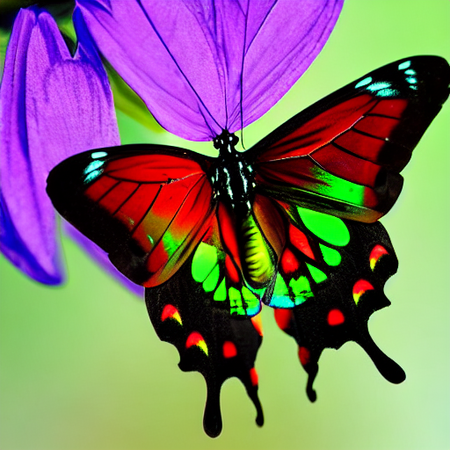 Результатом стала серия детализированных изображений бабочек, охватывающая множество видов, ракурсов и природных окружений. Эти изображения демонстрируют высокую степень реализма, точность в передаче уникальных узоров крыльев и богатой цветовой гаммы, а также естественность в контексте их обитания. Проект предлагает новое прочтение фотореалистичного искусства, где машинный интеллект способен воссоздать хрупкую и величественную красоту этих насекомых с художественной выразительностью.
