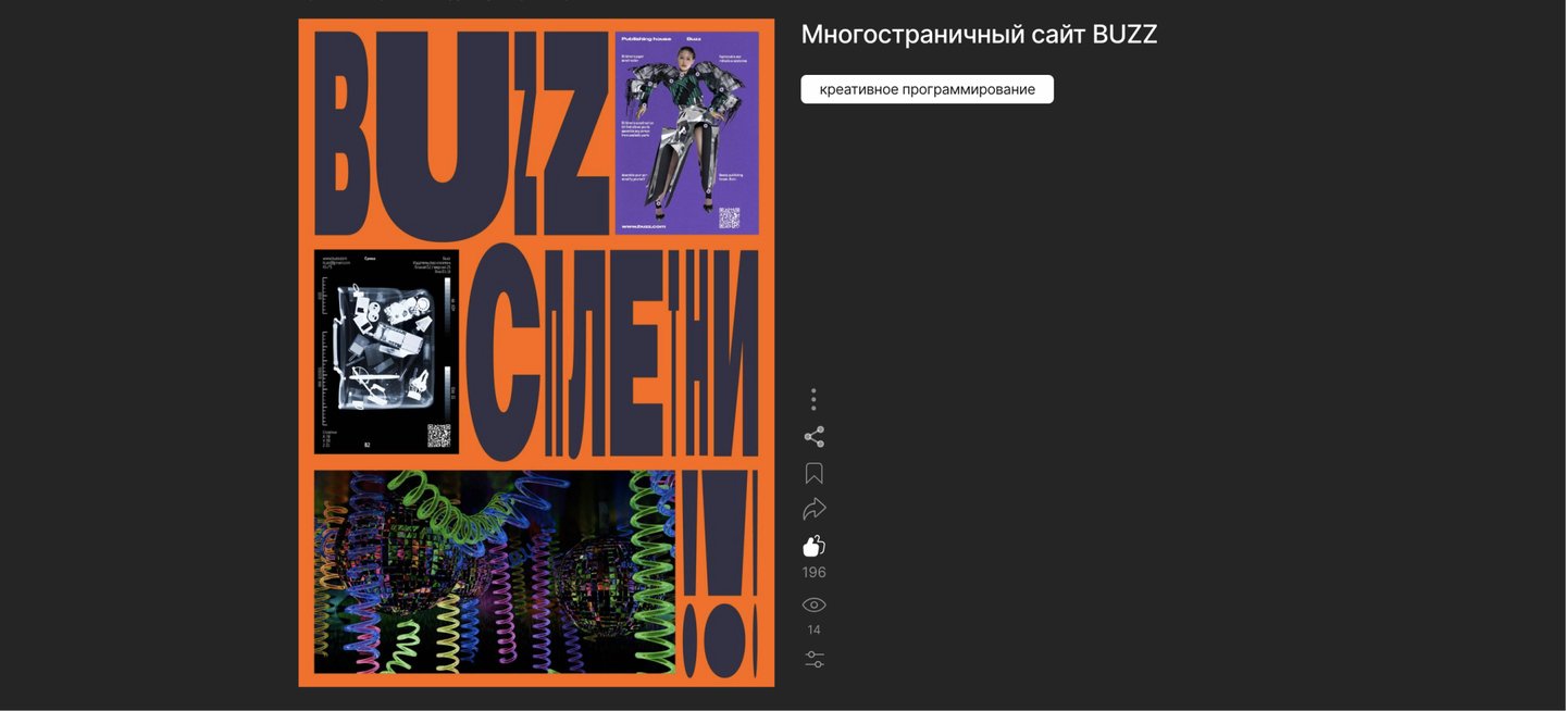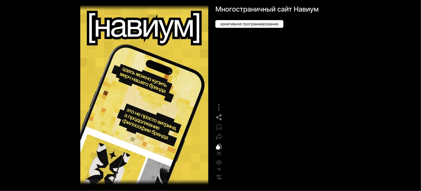 Части сайта, содержащие проекты прошлых модулей (плакаты/пространства), можно оформить как слайдер.