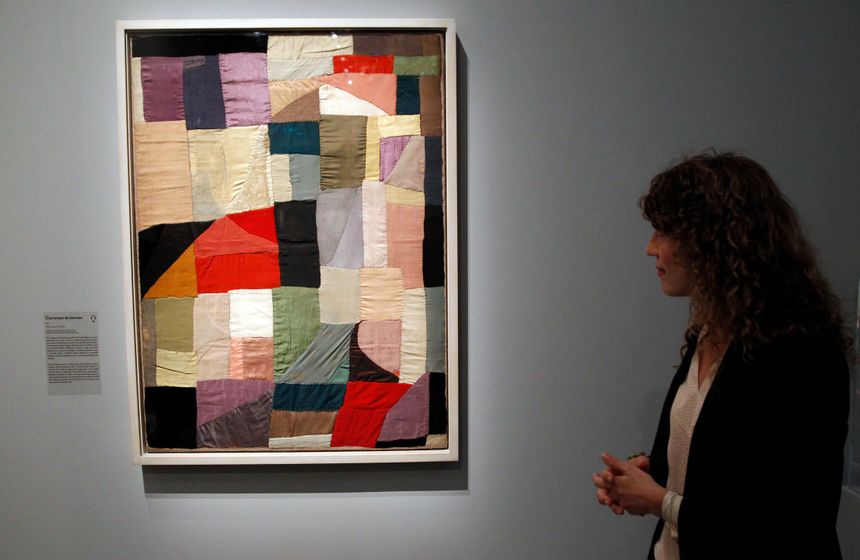 Sonia Delaunay — Couverture de berceau (Cradle cover, 1911); объект (пэчворк / одеяло), относимый к ранним текстильным экспериментам Делоне, задокументирован в фондах Centre Pompidou. https://www.centrepompidou.fr/fr/ressources/oeuvre/coX4Gb7