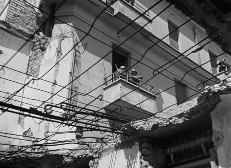 В довоенном итальянском кино улица была романтизирована или служила поверхностным фоном. Здесь же она обретает документальный статус: разрушенные здания, выбитые окна, следы бомбёжек и импровизированные баррикады фиксируют следы недавнего насилия, которые невозможно скрыть монтажом или декорациями. Улица буквально рассказывает историю города, не нуждаясь в пояснениях.