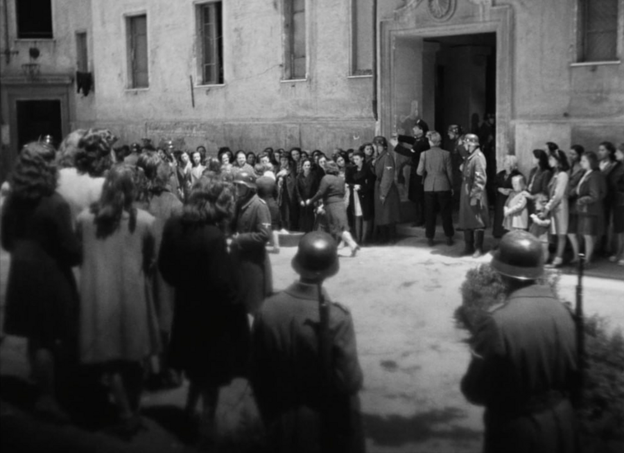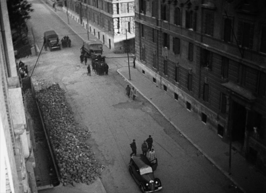 «Рим — открытый город» Росселлини фиксирует ранение города войной: Рим становится главным свидетелем происходящего. Улицы, разрушенные дома, случайные прохожие образуют живую документальную среду, в которой частные истории обретают политическую значимость.