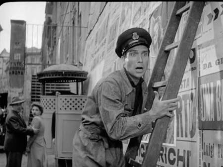 Сцена, где Антонио клеит рекламный плакат, строится на резком визуальном контрасте между ним и изображением идеализированной, роскошной жизни. Плакат показывает недостижимый мир красоты, комфорта и стабильности — тот самый буржуазный миф, который полностью расходится с реальностью послевоенной бедности. Этот контраст подчёркивает разрыв между обещаниями массовой культуры и жизнью простого человека и делает социальную несправедливость фильма ещё более видимой