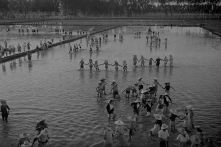 В «Горьком рисе» пространство рисовых полей становится ключевой визуальной метафорой социальной зависимости. Затопленные водой плантации, где женщины трудятся по колено в грязи, создают образ физической и экономической вязкости: вода как будто удерживает тела так же, как система удерживает их в бедности. Однообразие горизонта, повторяющиеся ряды растений и ритмичное движение множества согнутых фигур превращают пространство в символ труда без перспективы. Поля одновременно открыты и замкнуты: бескрайность ландшафта подчёркивает отсутствие выбора, а коллективная работа — подчинённость жёстким правилам.