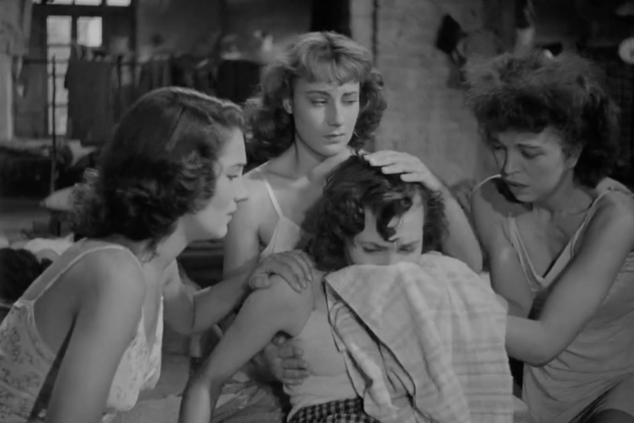 Коллектив в «Горьком рисе» играет двойственную роль: он одновременно становится источником силы и механизмом подчинения. Женщины, работающие на рисовых полях, образуют плотную общность, где ритм труда соединяет тела в единый организм. Однако эта же организованность показывает и жёсткость системы, в которой личное растворяется в коллективном. Внутри группы возникают соперничество, ревность, борьба за внимание мужчин — всё это нарушает иллюзию единства и подчёркивает, что коллектив формируется не только взаимопомощью, но и общей уязвимостью. В фильме группа женщин становится образом класса, который вынужден держаться вместе, но лишен возможности изменить свое положение.
