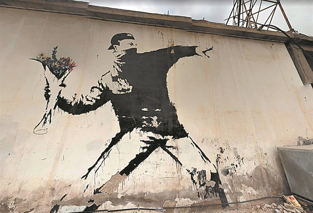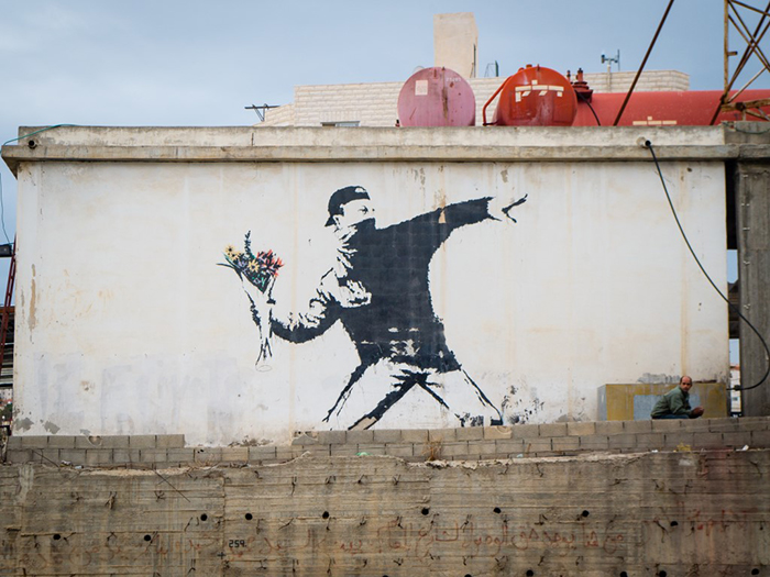 Бэнкси демонстрирует, как лаконичный визуальный символ может работать одновременно локально (на стене) и глобально (через фото и сети).