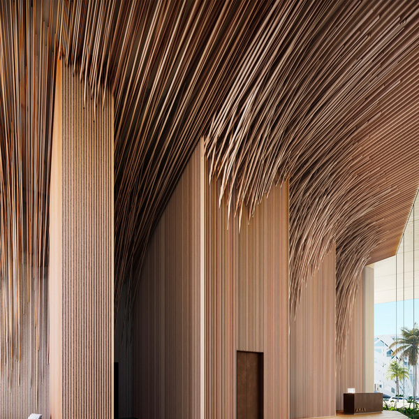 Kengo Kuma and Associates. Aman Miami Beach Residences — Lobby / Интерьер лобби комплекса Aman Residences в Майами.