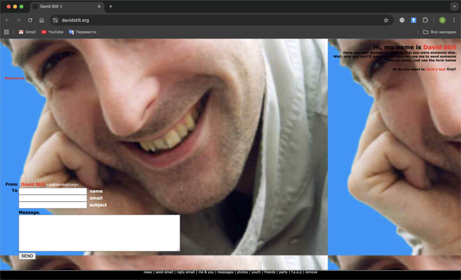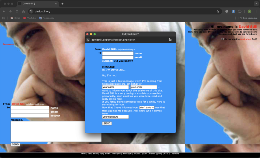 Страницу Дэвида Стилла Мартин Неддам создала, чтобы пользователи могли присылать письма от его лица. Так сфабрикованная идентичность Дэвида могла использоваться для передачи сообщения, если вы хотели бы остаться неизвестным.