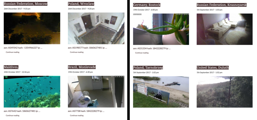 В этой работе художник собрал десятки незащищенных камер наблюдения. Сеть постоянно видит.