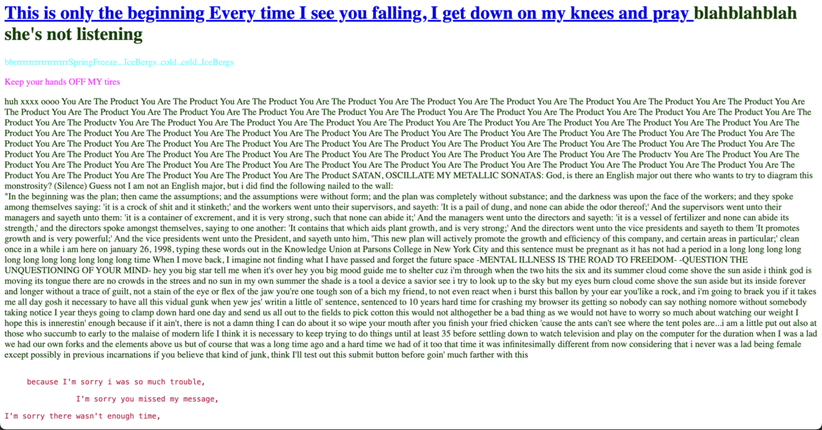 Сайт «Брендон» рассказывает о трагичной истории мальчика. Эпизоды его истории распадается на страницы сайта и существуют в сети как часть его сохранённой идентичности