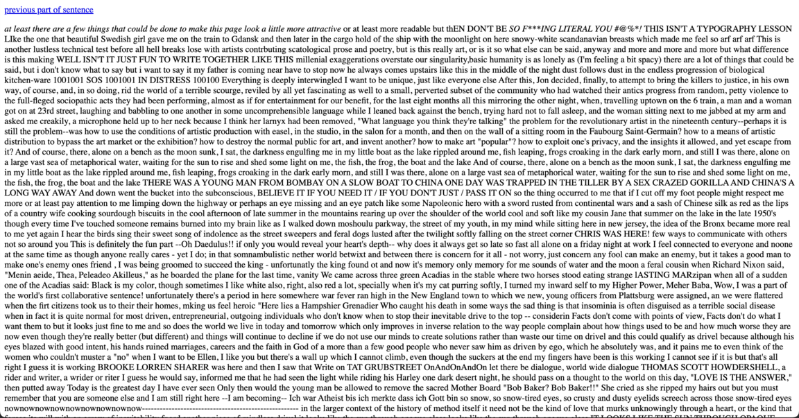 Douglas Davis, «The World’s First Collaborative Sentence», 1994 (восстановлено 2013)