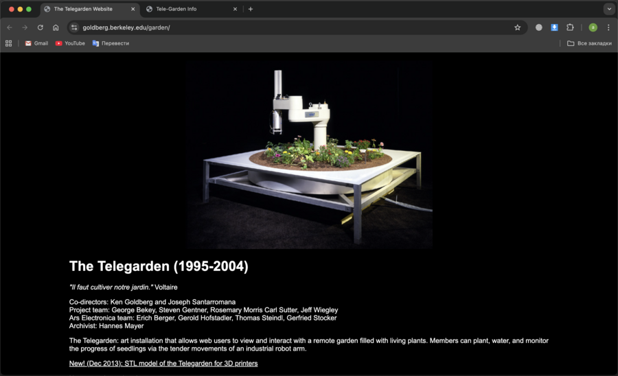 The Telegarden // Ken Goldberg URL: https://goldberg.berkeley.edu/garden/ (дата обращения: 18.11.2025).