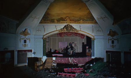 Бёрджесс описывает архитектуру как фон для действия, тогда как Кубрик превращает ее в инструмент социальной критики. Бруталистские интерьеры дома родителей Алекса, сюрреалистический бар «Корова», футуристическая квартира писателя — каждая локация становится визуальной метафорой различных форм социального насилия и контроля. Визуальная гиперболизация архитектурных форм создает ощущение тотальной антиутопии, более выраженной, чем в литературном первоисточнике.