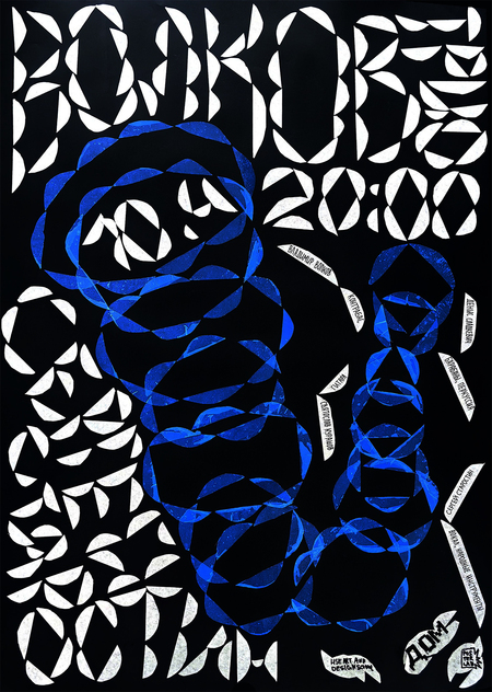 Плакат для Сергея Старостина и Волков Трио, выполненный посредством скотча. С помощью орнаментальных деталей, отсылающих к лепесткам.