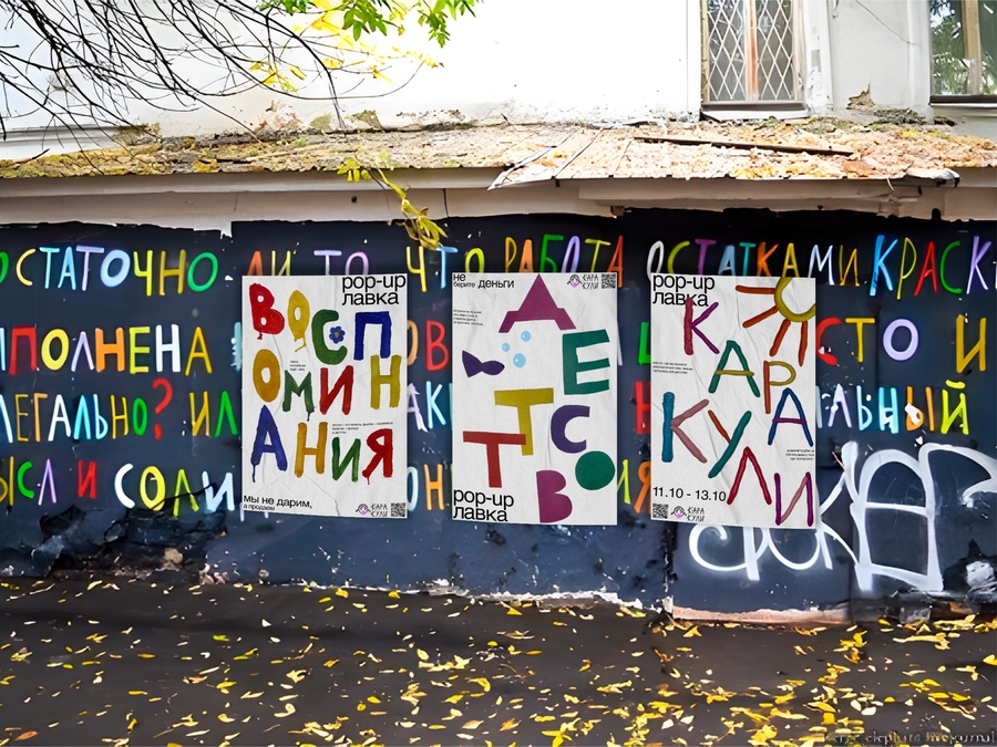 The second series describes a special project, a pop-up shop, where a person can pick up goods for «child’s» money: leaves, buttons, tickets, etc.