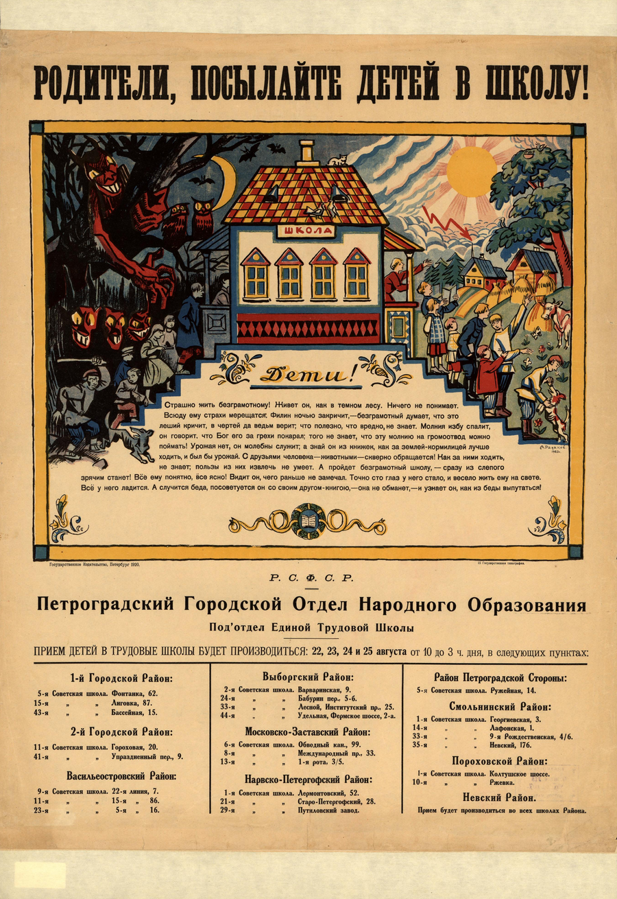 А. Радаков. «Родители, посылайте детей в школу!». 1920