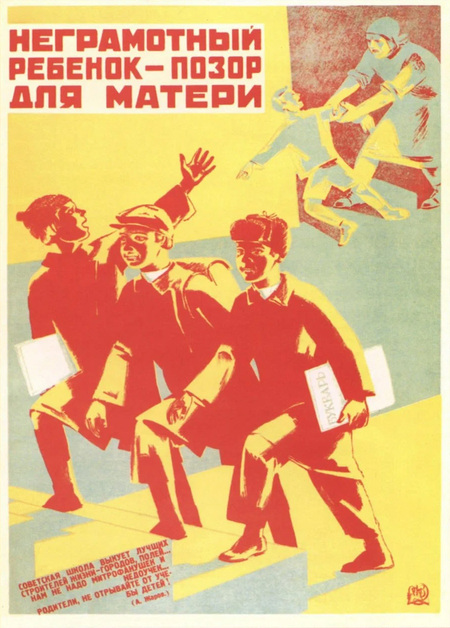И. Короть. «Учиться, учиться, учиться». 1925/ И. Громицкий. «Неграмотный ребёнок — позор для матери». 1930