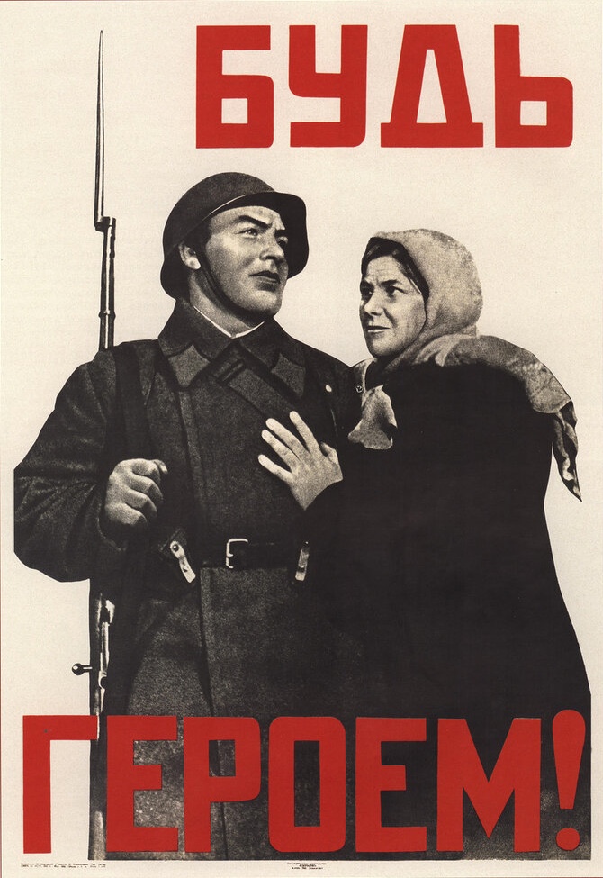 В военные годы и без того не слишком четкая черта между социальным и политическим плакатом стирается еще сильнее. Они открыто призывают народ объединиться против общего врага и встать на защиту своей Родины.