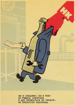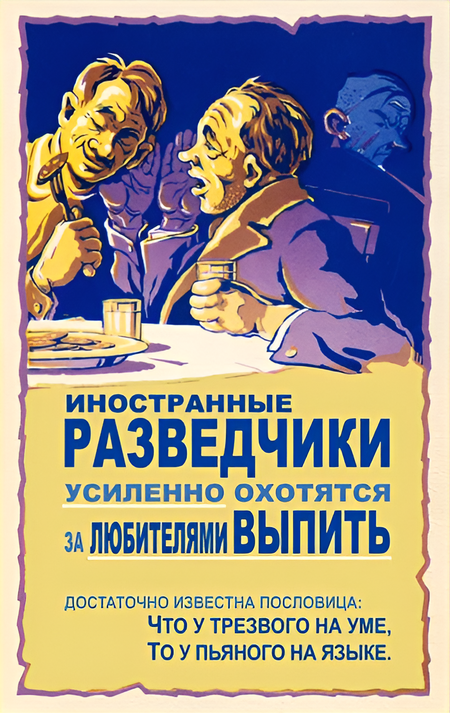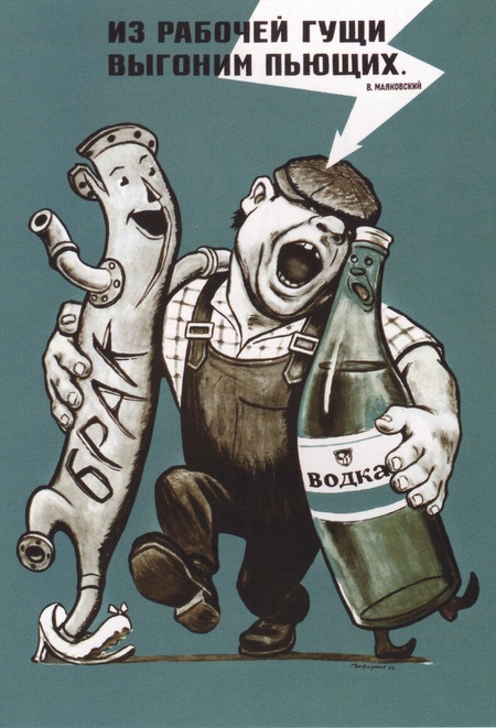 Неизвестный автор. «Иностранные разведчики усиленно охотятся за любителями выпить». 1959/ В. И. Говорков. «Из рабочей гущи выгоним пьющих». 1966