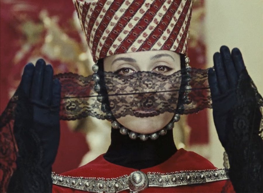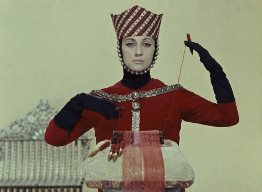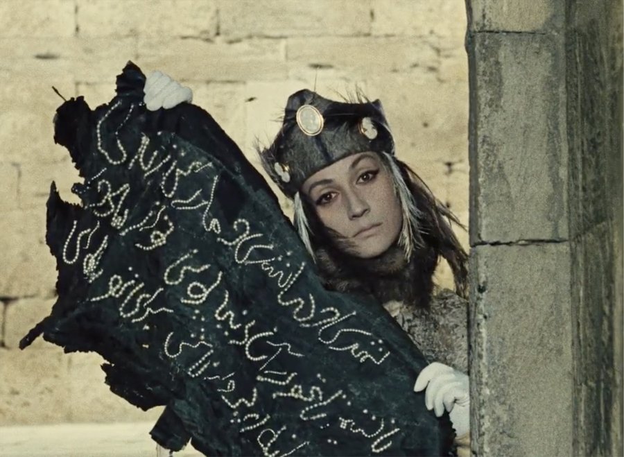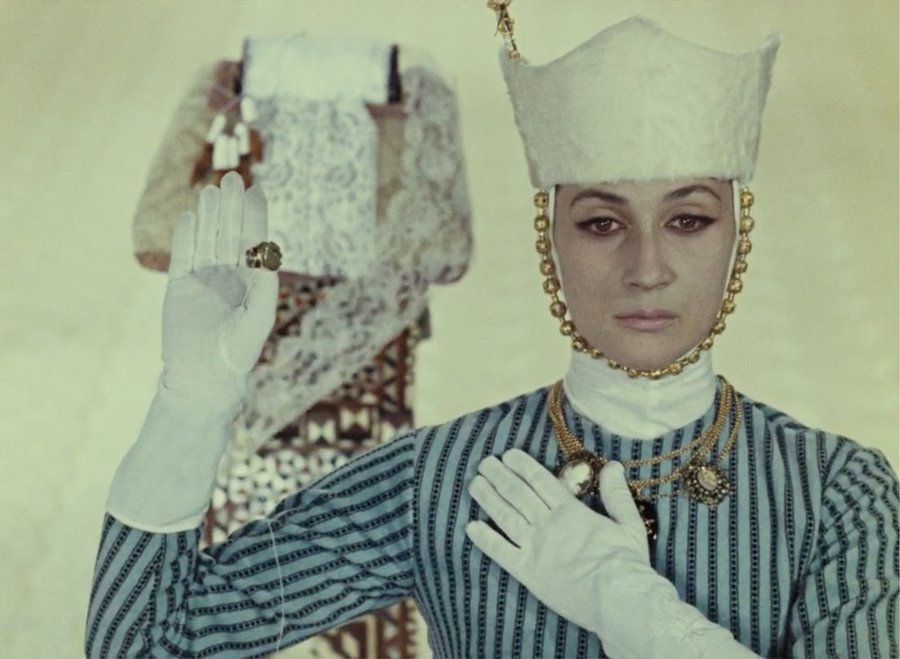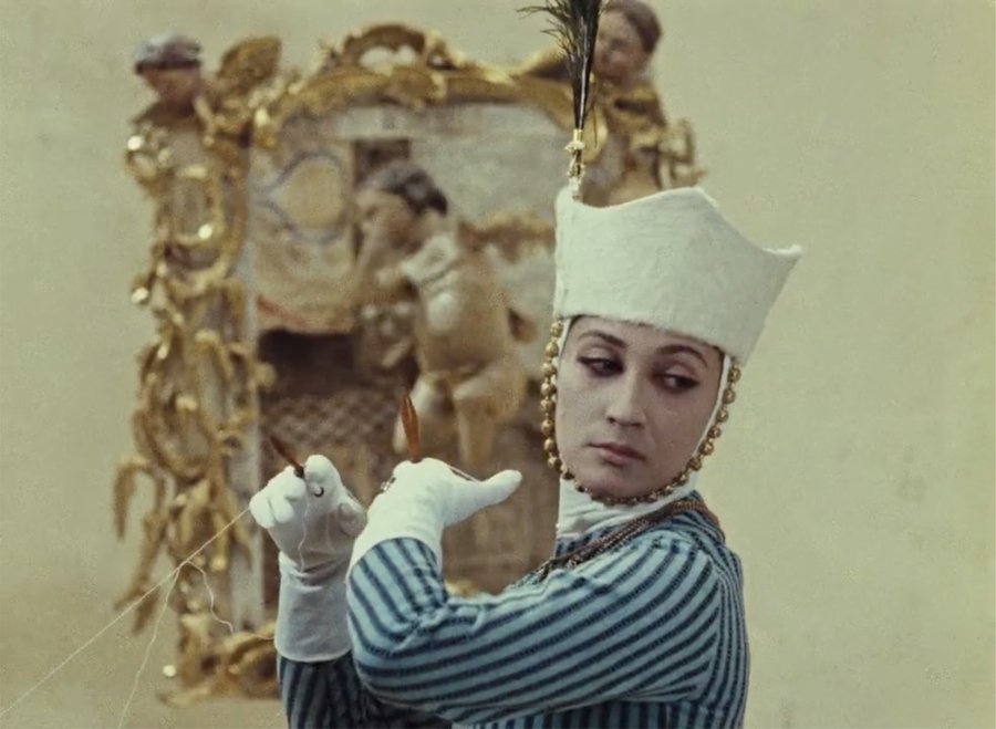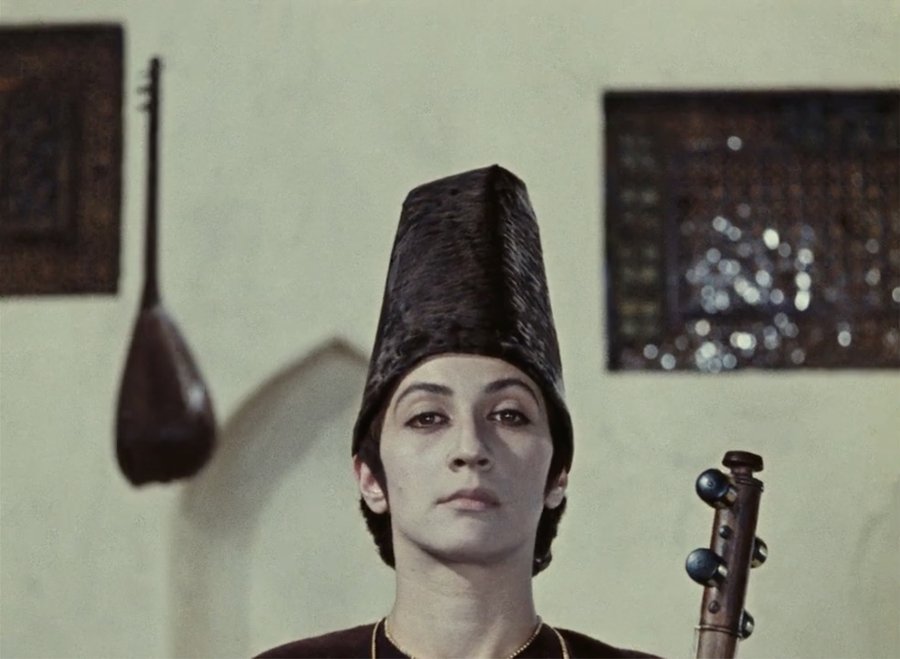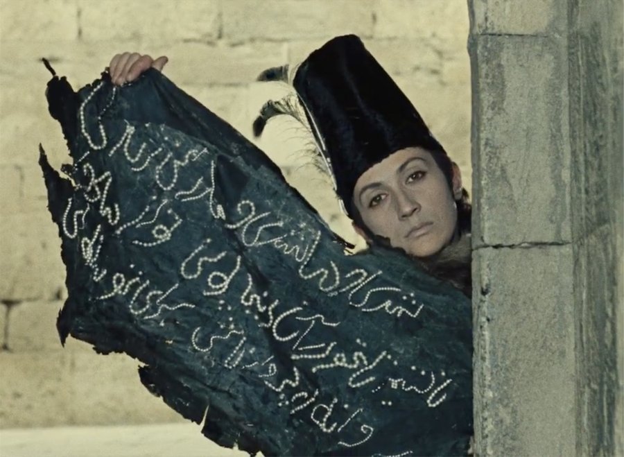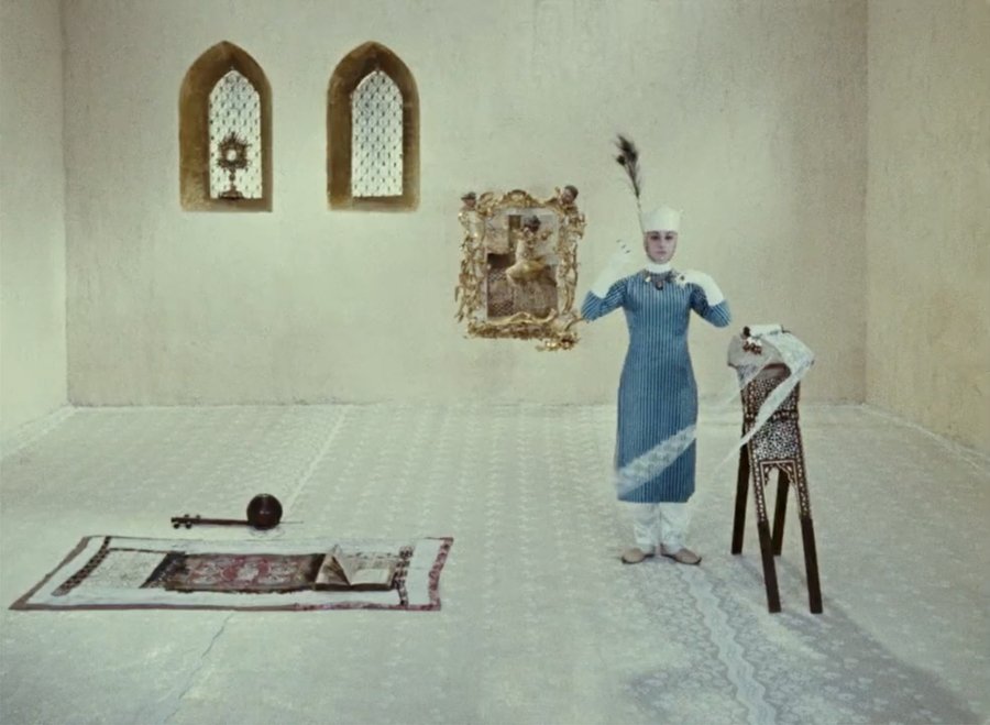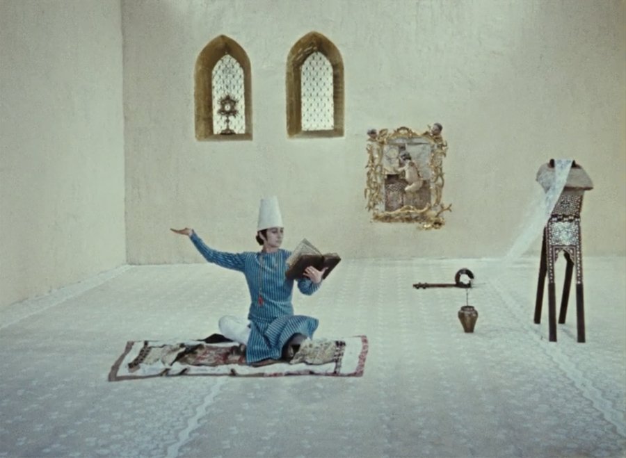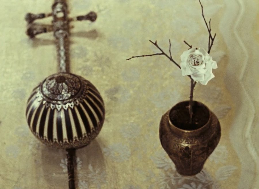 В этих кадрах царевна будто читает стихотворения Саята, они показаны с помощью метафорических образов, на фоне мы видим книгу, которая указывает, на то, что это его стихи