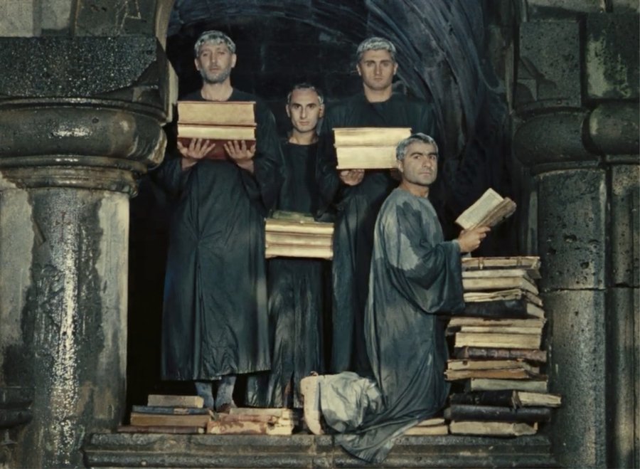 «Маленький Арутин стоял на крыше Санаинского монастыря среди мокрых книг. Маленький Арутин открыл книгу одну… вторую… третью…»