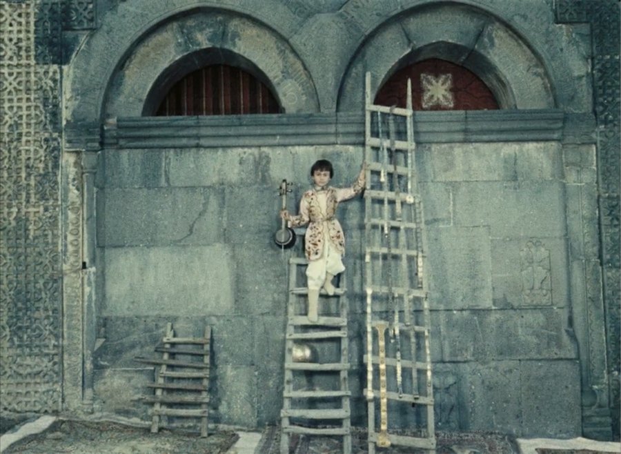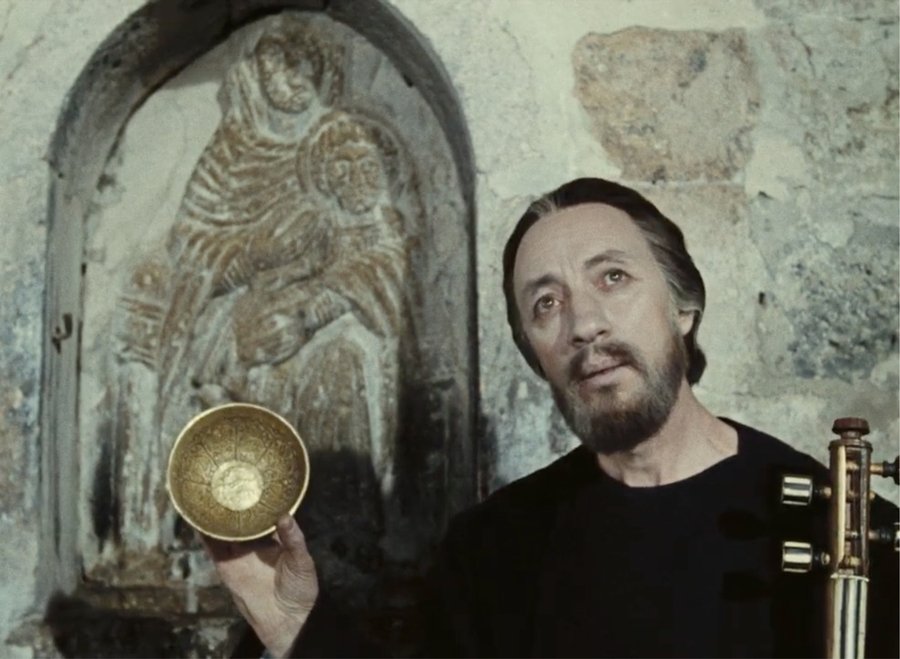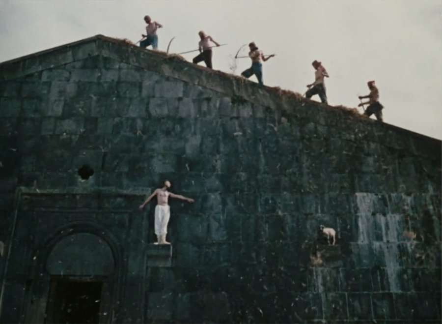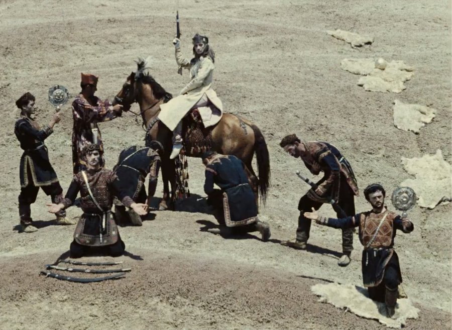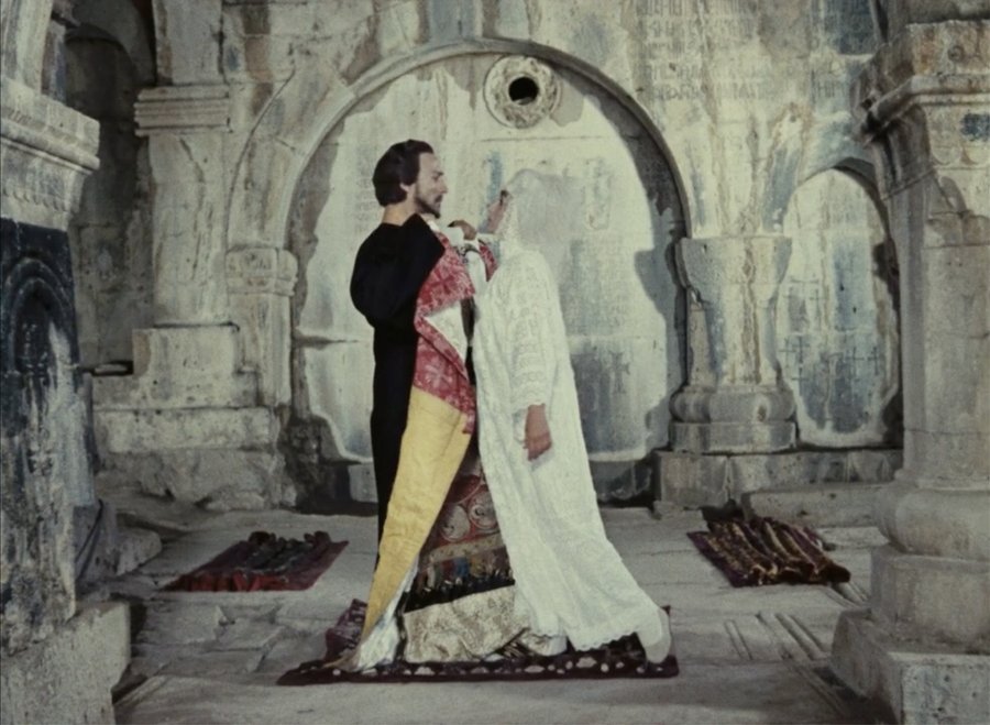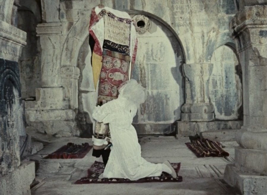 «Из белого храма, что в горах Самтависи, выходит царевна Анна… Царевна в белом, и свита царевны в белом. И в белом на белом коне Саят-Нова — ашуг царя… Ашуг царя… похож на белого Сурп-Геворка!»