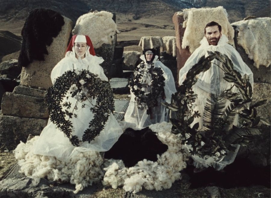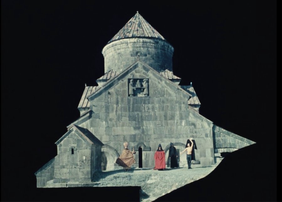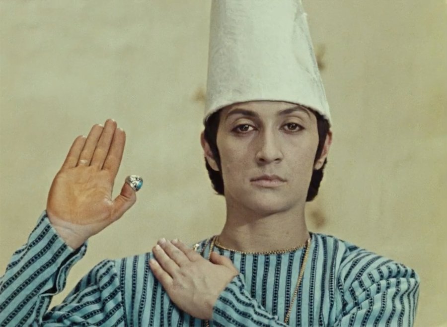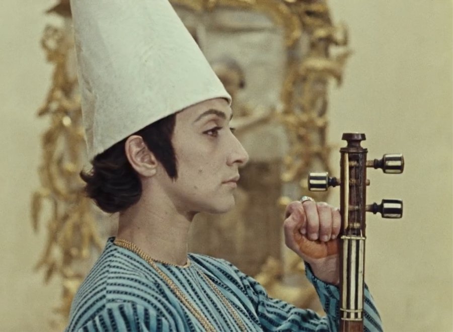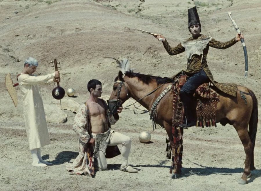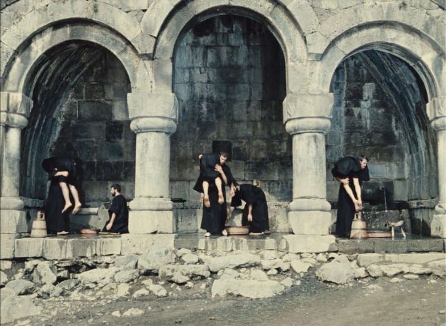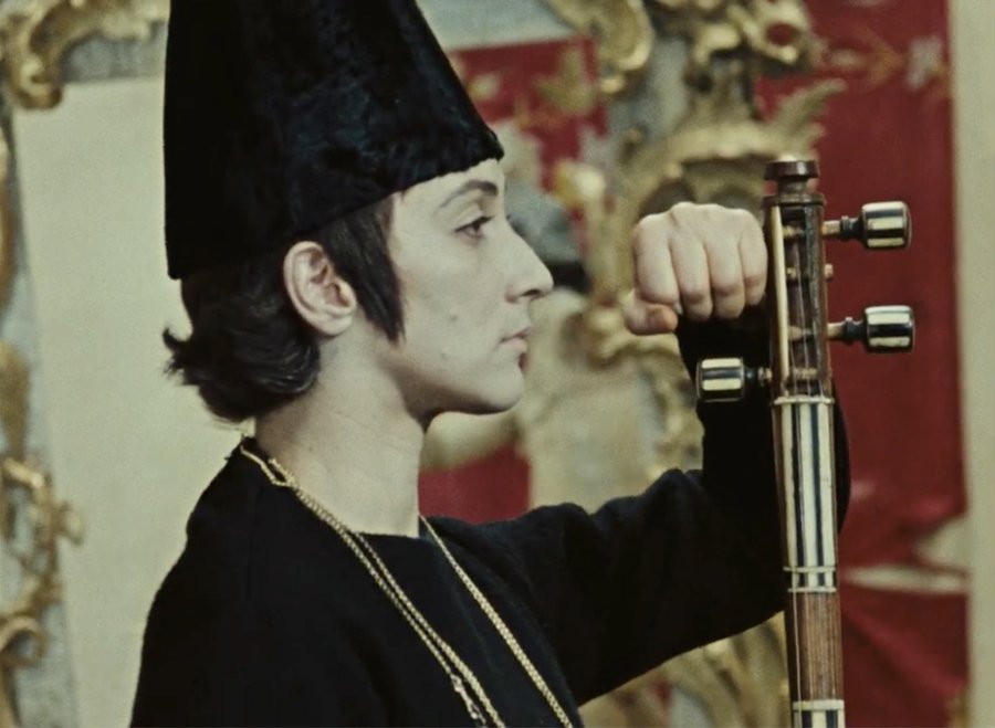 «Из белого храма, что в горах Самтависи, выходит царевна Анна… Царевна в белом, и свита царевны в белом. И в белом на белом коне Саят-Нова — ашуг царя… Ашуг царя… похож на белого Сурп-Геворка!»