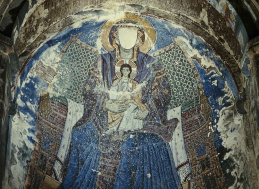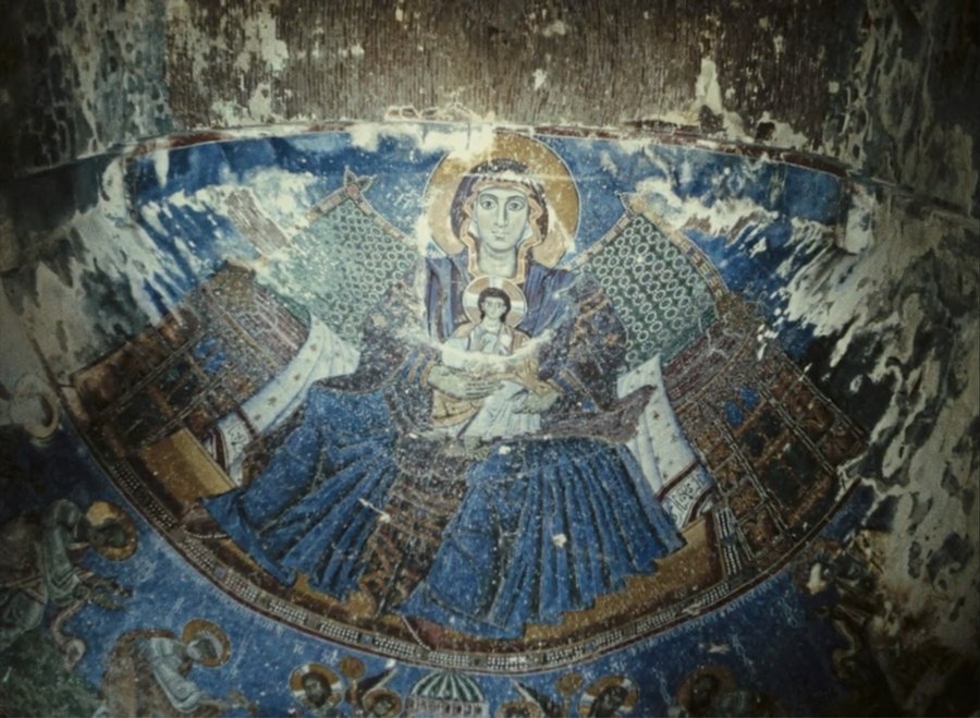 Он обращается к лику святой матери, но в первоначальной версии фильма вместо него появляется лицо женщины — страны Армении, который отражает то, что поэт должен служить народу.