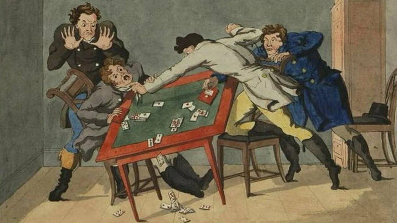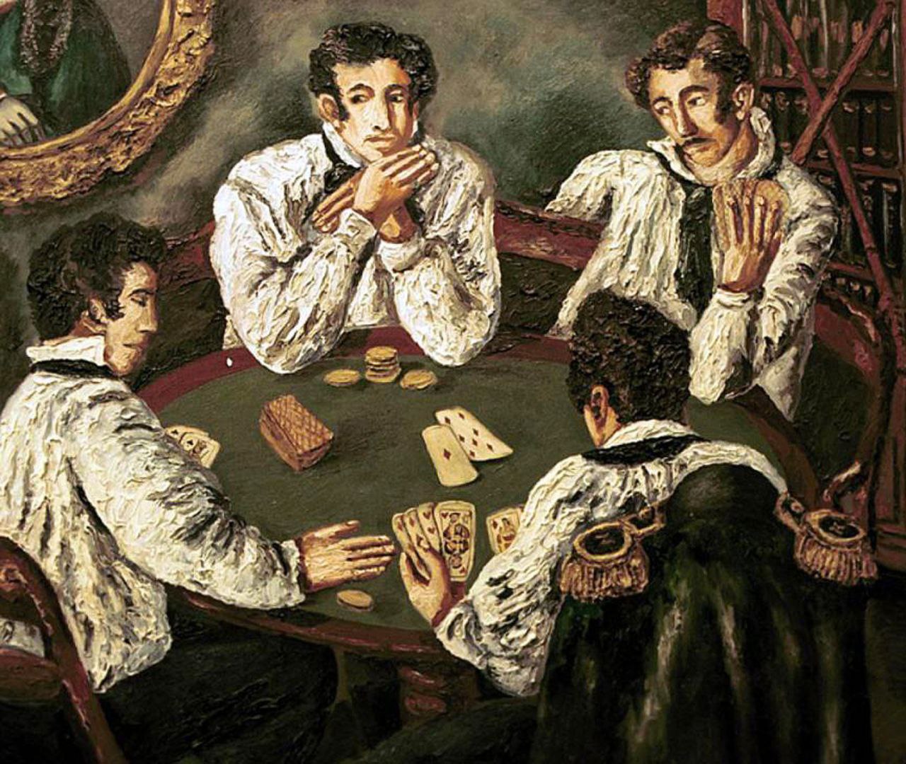 В XIX веке восприятие ещё сильнее сместилось: азарт теперь стал психологической проблемой — зависимостью и проявлением утраты себя. Живописцы изображали игроков как людей, потерявших внутренний контроль, обращённых внутрь себя, часто в состоянии отчаяния. [4]