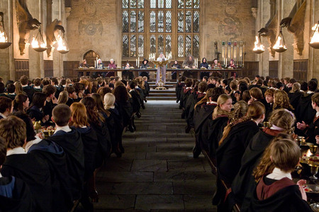 Эта локация была создана художниками специально для съемок. однако она все равно имеет реальный прототип. Им стал главный зал колледжа Крайст-Чёрч при Оксфордском университете. Он украшен витражами и множеством портретов, и также, как и Большой Зал, имеет высокие окна и схожий, украшенный резьбой потолок. Также у обоих локаций очень похожа организация пространства, она основана на осевой симметрии: в глубине зала имеется помост, на котором расположен стол для учителей и уважаемых гостей, а еще несколько длинных столов для студентов тянутся перпендикулярно преподавательскому к дверям.