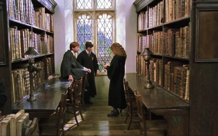 Яркий тому пример — библиотека Школы Волшебства. Местом для сцен поиска книг и изучения старинных рукописей стала Бодлианская библиотека Оксфорда. В ее визуальном облике переплетаются черты романской и готической архитектуры. Высокие витражные окна, массивные книжные полки до потолка, резные декоративные элементы и сочетание как полукруглых, так и стрельчатых арок. За счет выбора такой локации для съемок библиотека Хогвартса в фильме не кажется выдуманной или бутафорской, а производит впечатление настоящего пространства даже на тех, кто никогда не слышал о Бодлианской.