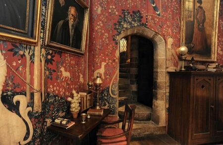 Достаточно контрастно выглядит интерьер гостиной Гриффиндора, в которой прослеживается викторианский стиль. В нем, наоборот, преобладают теплые оттенки, много красного цвета, текстильные фактуры. Мебель выглядит немного потрепанной, хаотично расставленной. Это создает ощущение домашнего уюта, тепла и душевности. Одним из самых ярких викторианских элементов являются гобелены, особенно с изображением единорогов. Самый известный из них — «Дама с единорогом». Схожую символику мы видим и на стенах гостиной Гриффиндора. Я предполагаю, что это связано как с вдохновением средневековым стилем, так и значением единорогов в волшебном мире. Они считаются почти священными животными, символизирующими чистоту.