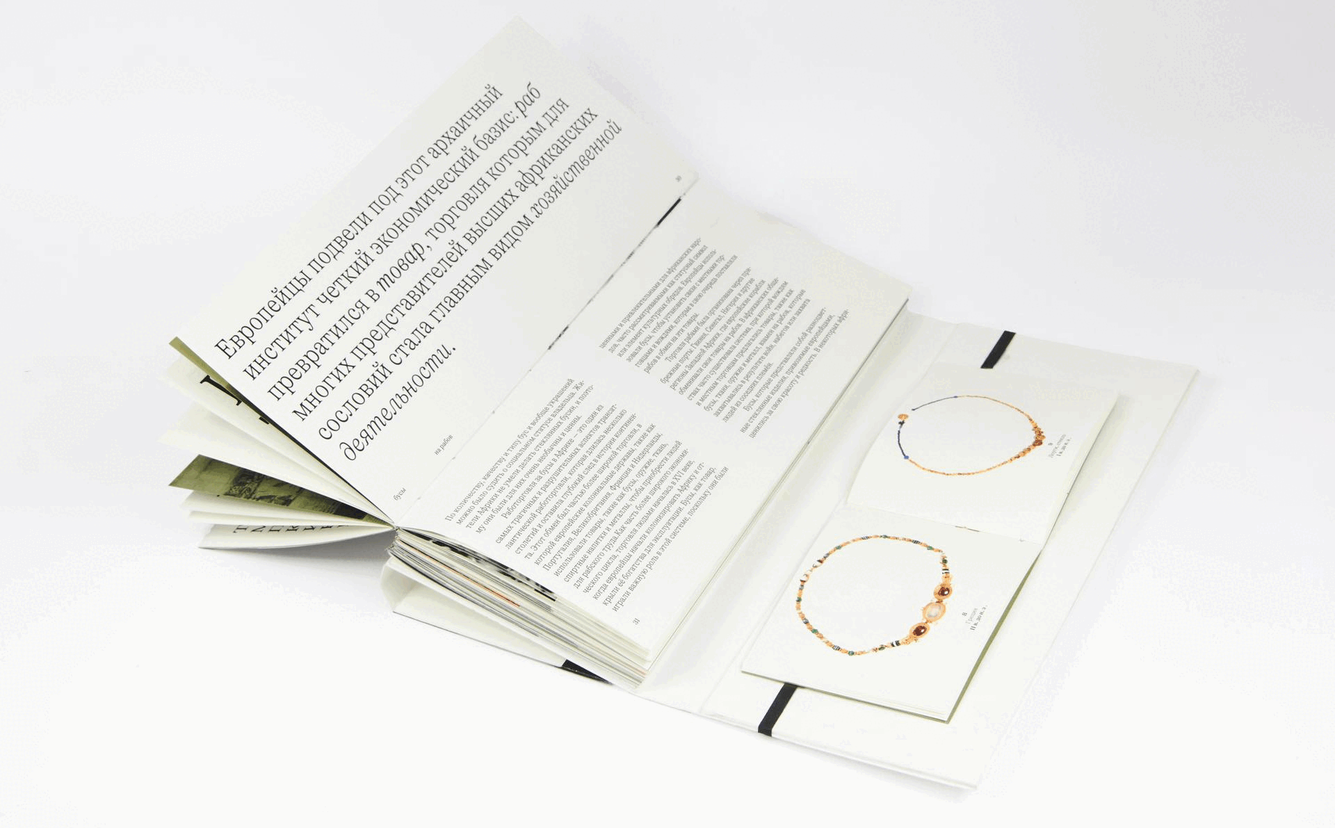 Мир торговал, когда денег еще не было. Предмет, его красота и редкость, играли ключевую роль в процессах обмена между людьми и формировали как господствующие цивилизации, так и зависимые от них народы. Книга состоит 2-х сквозных структур — большая повествовательная часть и мини-галереи. Связь с экспонатами из галерей простроена через зеленые вставки с номерами, относящимися к соответствующему экспонату из музеев: British Museum и The Metropolitan Museum of Art Бусы, меха и ткани составили базис для исследования преобладающих культурных парадигм и являются главами книги.