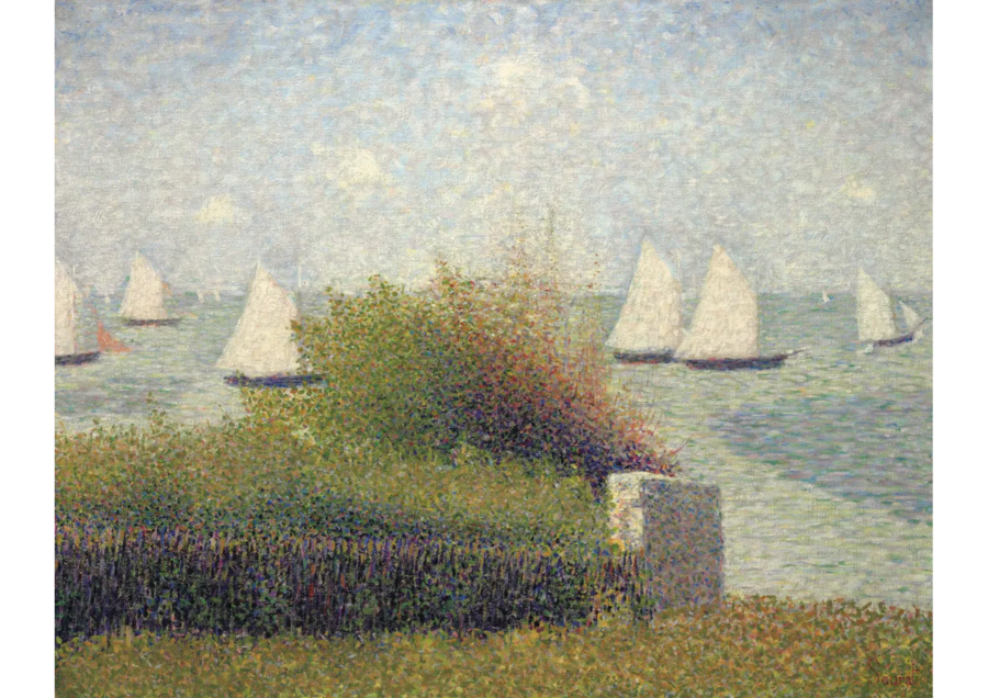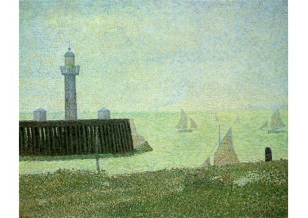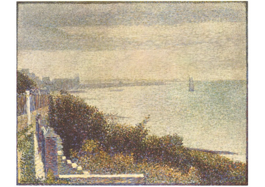 В работах Сёра делает фон (задний план) картины практически монохромным, из-за чего складывается впечатление, что небо дребезжит
