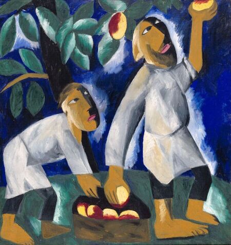 Гончарова Н. С. «Крестьяне, собирающие яблоки» 1911 г. // Таллин В. Е. «Матрос» 1911 г.